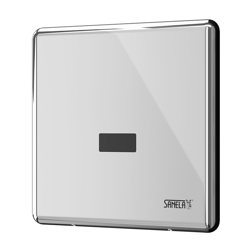 Urinal infra-red flushing unit with a mounting box, polished finish, 24 V DC