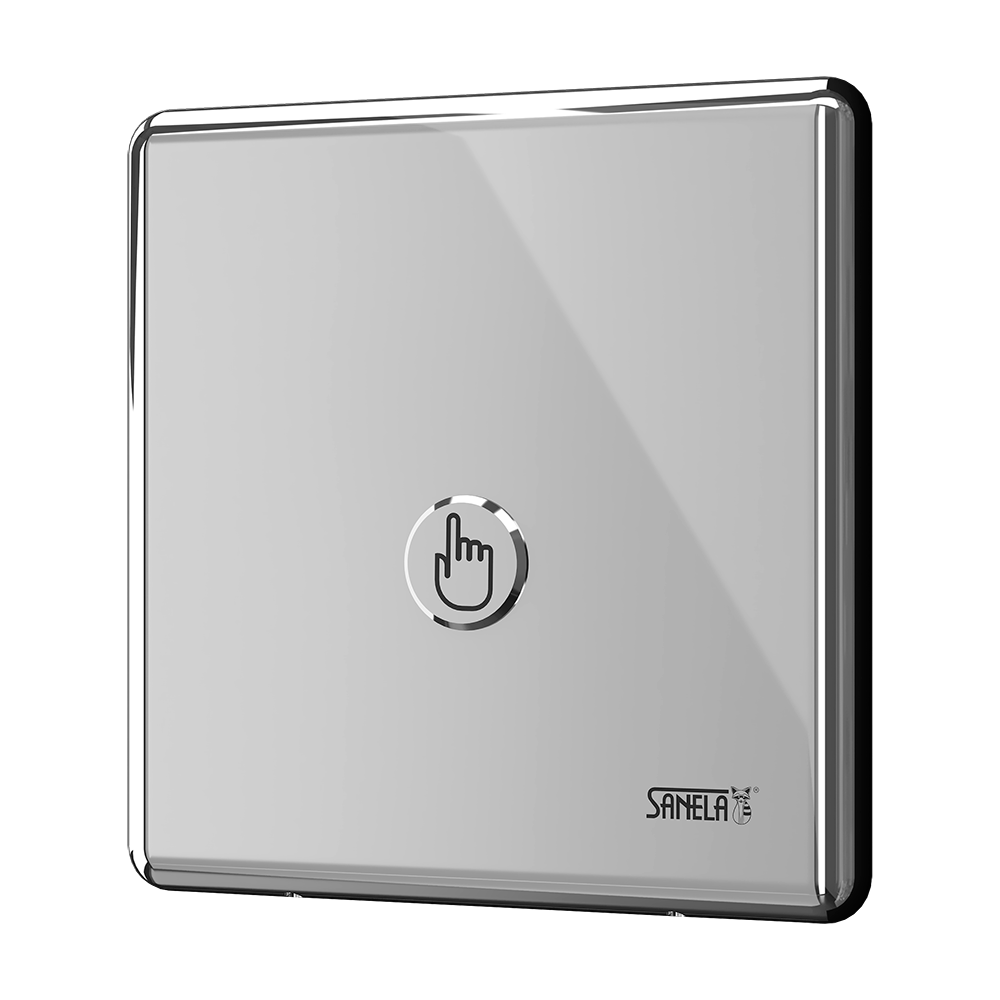Toilet piezo flushing unit for pressured water, polished finish, 24 V DC